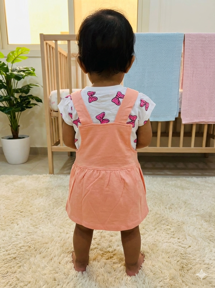 Design: 2-piece layered sets (Tee + Dress/Dungaree)